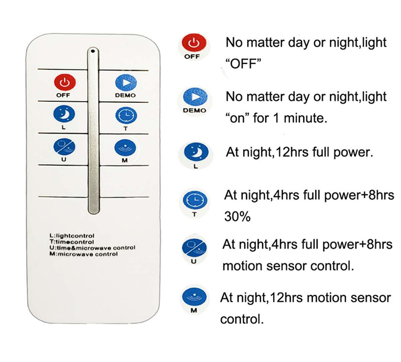 - नाइट सेंसर + माइक्रोवेव मोशन सेंसर + रिमोट कंट्रोल