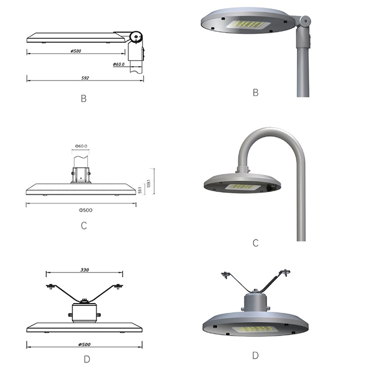 - लैंप पोस्ट का आकार: 76/60 मिमी